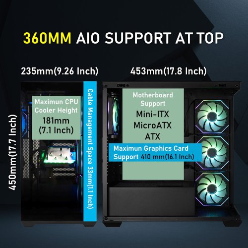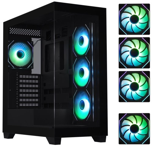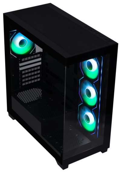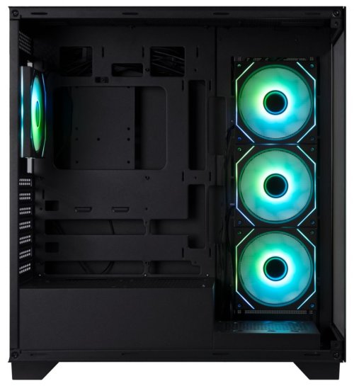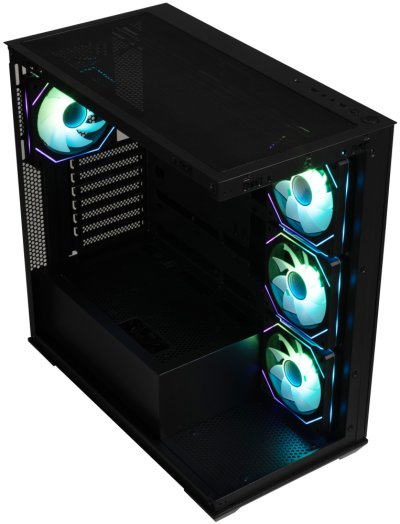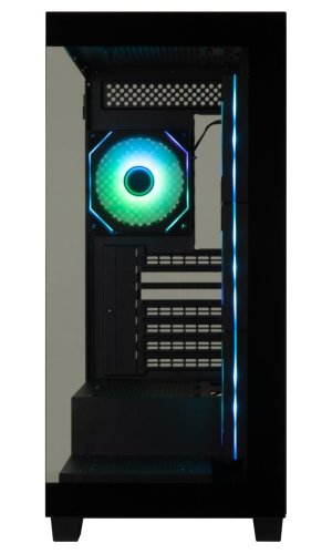 Herní počítačová skříň nabízí stylovou prosklenou bočnici i přední panel a prvotřídní kovovou konstrukci. Skříň je osazena čtyřmi ventilátory o velikosti 120 mm s RGB podsvícením. Potěší také možnost rozšíření o další 3 ventilátory. Samozřejmostí jsou také prachové filtry. Důmyslné řešení umožňuje pohodlné umístění až 360 mm dlouhého výměníku vodního chlazení na horní nebo boční straně. Ve skříni je dostatek prostoru pro chladič CPU do výšky až 170 mm a grafickou kartu o délce až 434,5 mm. Na horním panelu se nachází dva porty USB 3.0, jeden port USB-C, sluchátkový výstup a vstup pro mikrofon. Skříň je dodávána bez zdroje.
