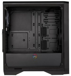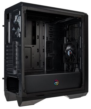 Moderní počítačová skříň s průhlednou bočnicí z temperovaného skla. Formát Middle Tower nabízí dostatek prostoru pro uložení až pěti disků, základní desky do velikosti ATX a až šesti ventilátorů. Předinstalovány jsou dva 120 mm ventilátory, z toho jeden s adresovatelným RGB podsvícením. Na horním panelu se nachází dva porty USB 3.0, sluchátkový výstup, audio vstup pro mikrofon a tlačítko pro rychlou změnu podsvícení. Ve skříni je dostatek prostoru pro chladič CPU do výšky až 160 mm a grafickou kartu o délce až 340 mm. Důmyslné řešení umožňuje pohodlné umístění až 360 mm dlouhého výměníku vodního chlazení na přední straně. Skříň je dodávána bez zdroje. Součástí skříně je také sada prachových filtrů.