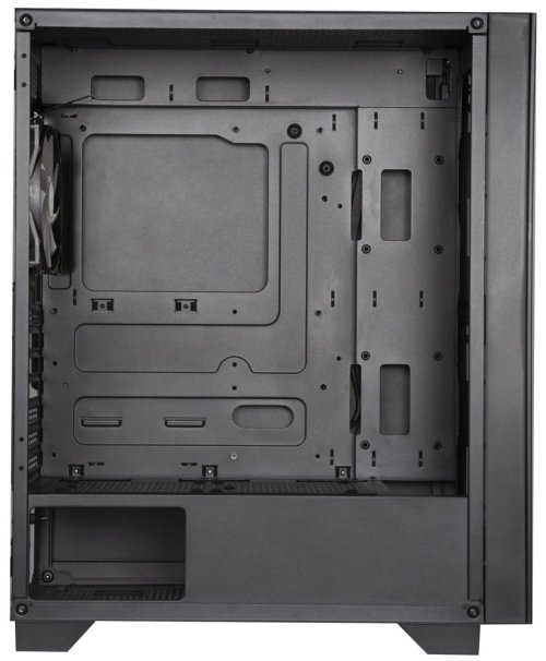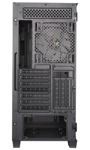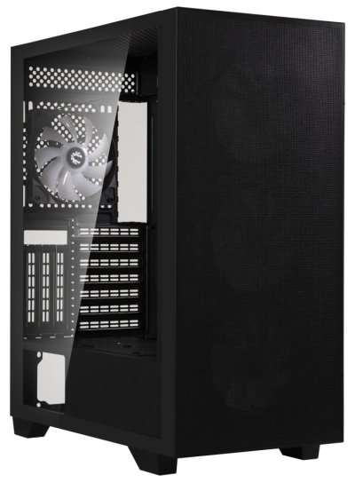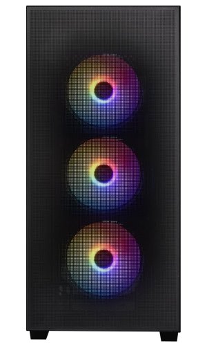 Kvalitní počítačová skříň formátu Middle Tower nabízí čtyři 2,5" a dvě 3,5" pozice pro SSD a pevné disky. Skříň je vybavena průhlednou bočnicí a poloprůhledným čelem s perforací pro optimální proudění vzduchu. Předinstalovány jsou čtyři 120mm ventilátory s FRGB podsvícením. Na horním panelu se nachází dva porty USB 3.0, jeden port USB 2.0, sluchátkový výstup a audio vstup pro mikrofon. Ve skříni je dostatek prostoru pro chladič CPU do výšky až 170 mm a grafickou kartu o délce až 355 mm. Důmyslné řešení umožňuje pohodlné umístění až 360 mm dlouhého výměníku vodního chlazení na přední straně. Potěší také přítomnost prachových filtrů. Skříň je dodávána bez zdroje.