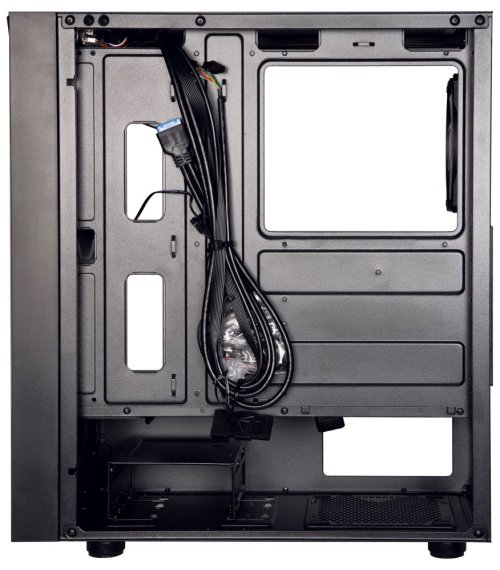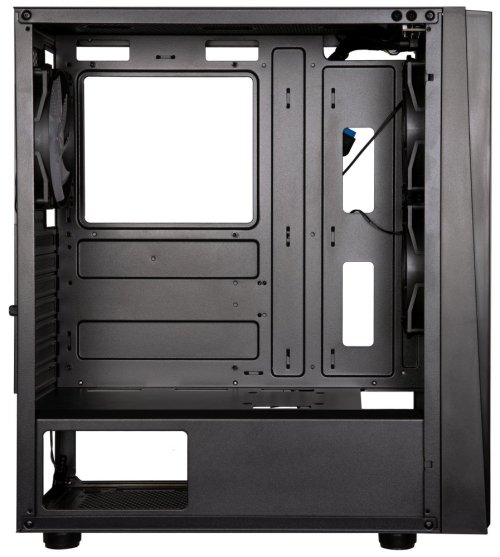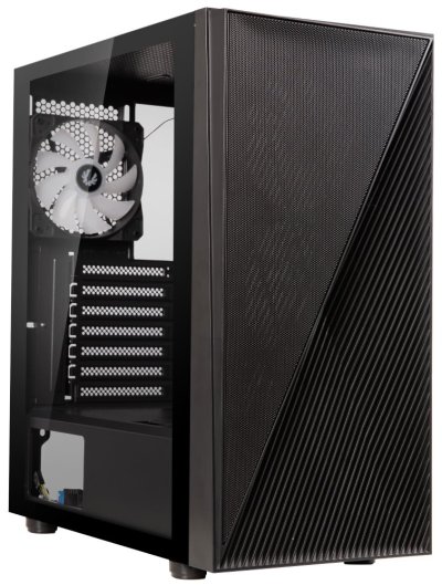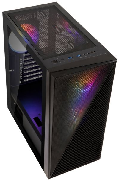 Moderní počítačová skříň s průhlednou bočnicí z tvrzeného skla. Formát Middle Tower nabízí dostatek prostoru pro uložení až čtyř disků. Na horním panelu se nachází dva USB 3.0 porty, jeden USB 2.0 port, sluchátkový výstup a audio vstup pro mikrofon. Skříň je vybavena čtyřmi 120mm ventilátory se statickým RGB podsvícením. Ve skříni je dostatek prostoru pro chladič CPU do výšky až 160 mm a grafickou kartu o délce až 345 mm. Skříň je dodávána bez zdroje. Součástí je také magnetický prachový filtr.