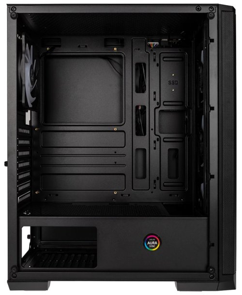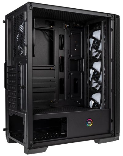 Skříň formátu Middle Tower nabízí dvě 2,5" pozice pro SSD disky a dvě 3,5" pozice pro pevné disky. Na horním panelu se nachází dva USB 3.0 porty, sluchátkový výstup a audio vstup pro mikrofon. Skříň je vybavena čtyřmi 120 mm ventilátory disponujícími ARGB podsvícením, které spolu s průhlednou bočnicí zajišťují vytříbený design. Důmyslné řešení umožňuje pohodlné umístění až 360 mm dlouhého výměníku vodního chlazení na přední straně. Ve skříni je dostatek prostoru pro chladič CPU do výšky až 160 mm a grafickou kartu o délce 315 mm. Skříň je dodávána bez zdroje. Součástí skříně je také sada prachových filtrů.