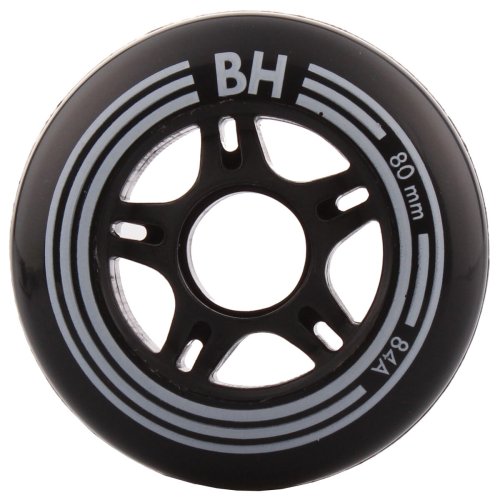 Náhradní kolečka pro kolečkové brusle BH Black mají novou vylepšenou směs doplněnou o přísady zvyšující hustotu, díky které se prodloužila jejich životnost a nájezd km. Dalším pozitivem je komfortnější jízda s lepší přilnavostí na všech druzích povrchů. Tento model má průměr 80 mm, tvrdost 84A, velikost středu 50 mm, šířku 24 mm a jsou určená pro ložiska 608 (ABEC). Jsou vhodné pro mírně pokročilé a pravidelné bruslaře. Uvedená cena je za 1 ks.