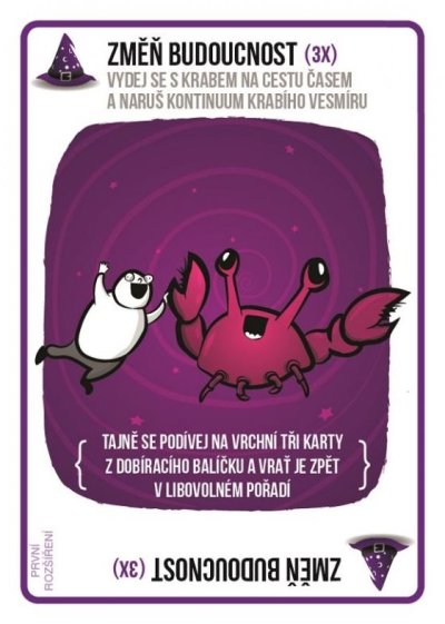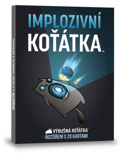 Tohle je první rozšíření Výbušných koťátek. Výbušná koťátka je hra od Elana Lee, Matthew Inmana a Shane Smalla, která v roce 2015 změnila historii crowfundingových kampaní, když na její vznik přispělo přes 219 000 lidí. Hra Výbušná koťátka je kočičí verze Ruské rulety. Hráči se zde střídají v tazích během kterých si dobírají karty, dokud takto někdo neobdrží vybuchující koťátko čímž prohraje hru. Změny směru hry, nová šance jak hanebně umřít a límec hanby, který označí chudáka, který pořádně nesleduje hru? Nejen to vám nabídne první oficiální rozšíření Implozivní koťátka. 20 nových karet v extra velké krabici prostě musíte mít! Toto je pouze rozšíření hry Výbušná koťátka. Nelze hrát samostatně, vyžaduje kopii základní hry! Obsah balení: