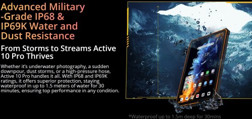 Blackview Active 10 Pro Rugged Tab 12GB/512GB, 10.95-inch FHD+ 1920x1200 IPS 90Hz LCD Corning Glass 3, MT6878 Octa-core 2.5GHz, 50MP Front/108MP-20MP Rear Camera infared nught vision, Battery 30000mAh, 55W fast charging, USB Type-C, Android 14, SD card slot, NFC, Fingerprint, MIL-STD-810H