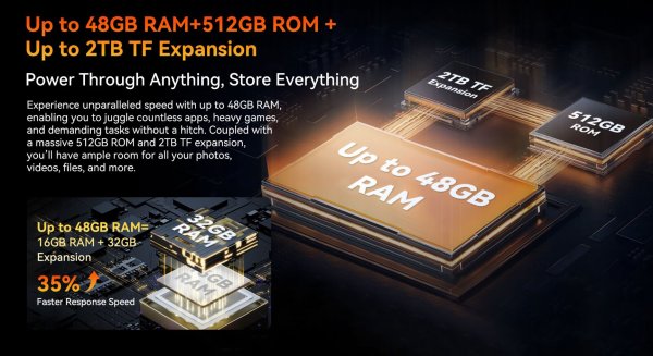 S moderním 5G procesorem a masivní operační pamětí (až 16 GB s virtuálním rozšířením) telefon zvládá náročný multitasking, práci s offline mapami i plynulé nahrávání 4K videí.