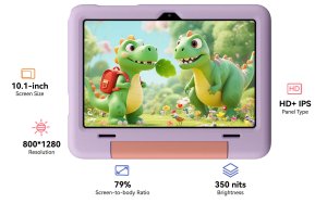 Tablet je vybaven 10,1" IPS displejem s HD+ rozlišením, který je ideální pro sledování pohádek, výuku i kreslení. Nechybí režimy ochrany očí, které snižují únavu při delším používání – čtecí režim, noční světlo i tmavý režim.