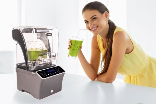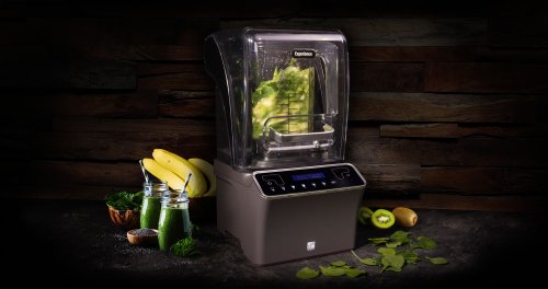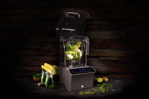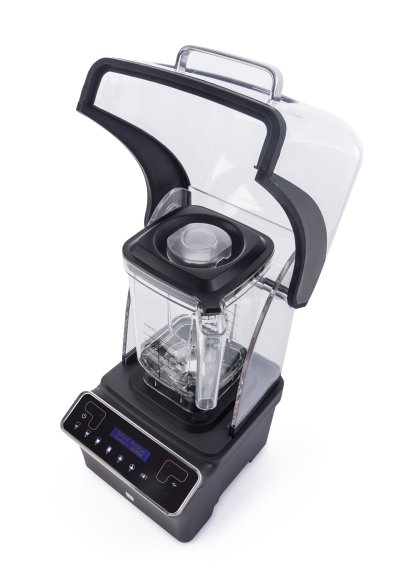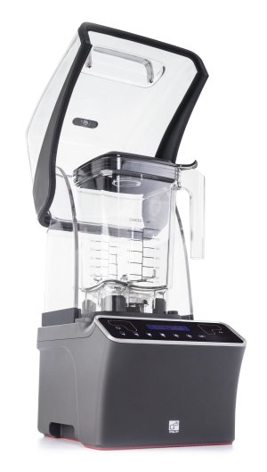 Atraktivní stolní mixér, 1,2l nádoba, výkon 1 500 W, 28 000 ot./min., digitální ovládání, dotykový displej, přednastavené i vlastní mixovací programy, odhlučňovací kryt pro tiché mixování.