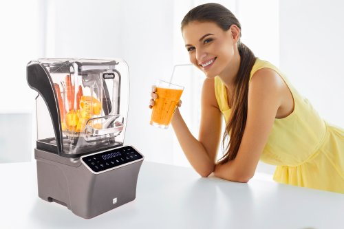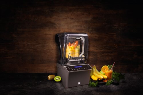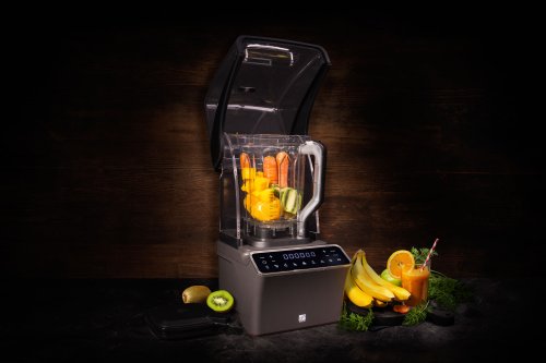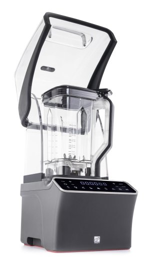 Po uzavření mixovací nádoby se surovinami sklopíte odhlučňovací kryt, jedním dotykem spustíte vakuování a poté můžete mixovat.