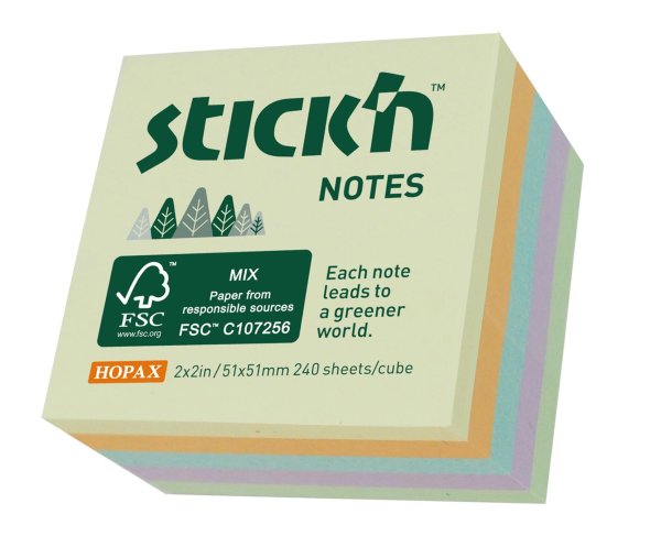 Samolepicí bloček ve tvaru mini kostky v mixu pastelových barev Bločky jsou vyrobené z papíru, který pochází z ekologicky obhospodařovaných lesů Certifikovaný papír šetrný k přírodě využívá lepidlo na …