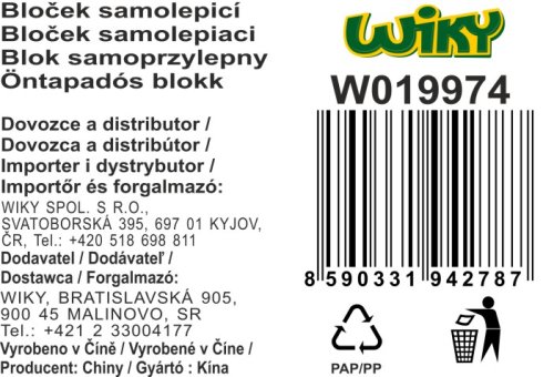 Bloček samolepící, 5x20 pruhů - Čísla