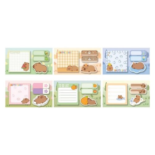 Samolepicí set bločků s kapybarami potěší každého milovníka roztomilých drobností i praktického plánování. Různé tvary a velikosti se skvěle hodí na poznámky, úkoly nebo milé vzkazy pro vaše blízké.<br> <br> Bločky jsou umístěny na skládací obálce, která slouží jako pevná podložka a umožňuje přehledné uspořádání celé sady. Po spotřebování ji můžete využít třeba na uchování samolepek, papírků nebo drobných poznámek.<br> <br> Veselé motivy s kapybarou dodají šmrnc každému diáři, sešitu i monitoru. Skvělé do školy, do práce i na doma – zkrátka kamkoli, kde se hodí trochu usměvavé organizace.<br> <br> OBSAH BALENí: <br> • 1× bloček 70×70 mm<br> • 2× štítky 55×18 mm<br> • 1× bloček 50×50 mm<br> <br> Motiv: kapybara<br> počet listů: 20 (každý bloček)