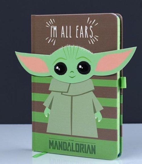 Do svého nového linkovaného zápisníku s motivem Mandaloriana můžete zapisovat Vaše toulky po galaxii. Také veškeré myšlenky, tužby a tajné lásky – Baby Yoda vás vyslyší svýma velkýma ušima. Zápisník má pevnou vazbu a je v kombinaci hnědé a zelené barvy.