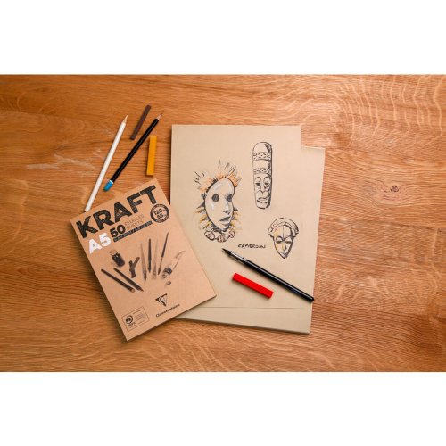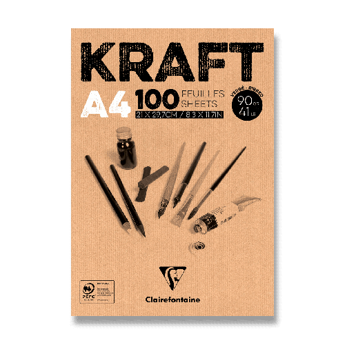 Umělecký blok Clairefontaine Brown Kraft má 100% přírodní a recyklovaný papír vhodný na nejrůznější výtvarné techniky.