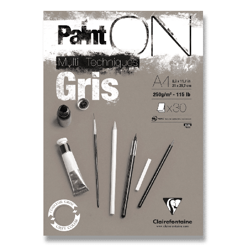 Blok Clairefontaine Paint on Grey má šedý jemně hrubý papír ze 100% celulózy.