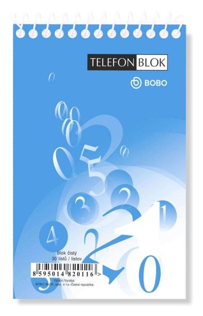 Stvořen pro všechny, kteří rádi a často telefonují. Mějte jej stále po ruce a pište si do něj vše, co během telefonátů řešíte.br brTelefonní bloček je nepostradatelný pomocník každého telefonního přístroje, ale hodí se i na poznámky, které chcete mít neustále u sebe.br brBloček obsahuje 30 čistých listů z bezdřevého papíru v lepené vazbě. Popsané listy snadno z bločku odtrhnete.