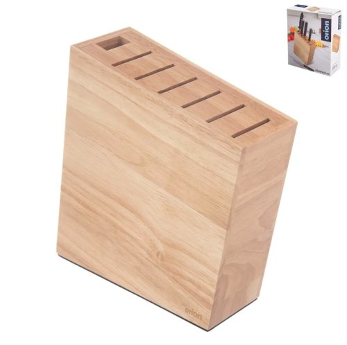 Stojan na nože je velmi elegantní a má nadčasový design. Nože máte po ruce, netupí se nikde v zásuvkách. Vypadá velmi stylově, uplatní se jak v moderní, tak klasické kuchyni. Uloží 6 nožů a ocílku/nůžky. Pěnová podložka zabraňuje posunování po podložce a poškrábání povrchu nábytku. Materiál: gumovníkové dřevo, EVA. Rozměry: stojan 23.5 x 7 x 23 cm. Stojan není vhodný do myčky nádobí. EAN 8592381208899
