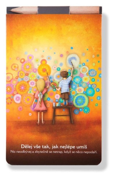 Formát 150 x 90 mm, čistý (nelinkovaný), lepený, tužka v bloku, magnet na zadní straně, speciální knižní papír (Holmen book), motiv Dělej vše tak, jak nejlépe umíš. br brPoznámkový blok s tužkou a magnetem br• Krásná barevná obálka s ilustrací od Lucie Ernestové br• Vysoká gramáž papíru br• Krémový Holmen Book papír br• 40 čistých listů br• lepená vazba br• Formát zápisníku je 15 x 9 cm br brLucie Ernestová brJsem ilustrátorka, grafička a máma dvou kluků. Vymýšlím a vydávám hry šité na míru dětskému humoru a fantazii a také poznámkové bloky v kroužkové vazbě. Kreslím inspirační obrázky na důležitá životní témata, která se objevují i na obálkách zápisníků, bloků nebo například Vymalovánek. Obrázky se stávají zrcadlem našich vlastních postojů a odrazovým můstkem pro zajímavé rozhovory. Jsou bezpochyby vhodným pomocníkem pro všechny moudré rodiče a učitele, kterým se mohou stát průvodci jejich vlastními pohledy na svět. br brHolmen Book papír brJedná se o speciální knižní papíry, který se skvěle hodí na psaní a kreslení. Díky krémovému vzhledu je příjemnější na práci než klasický bělený papír. Holmen Book papír je sice dřevitý, ale papír má hned několik certifikátů, které zaručují ekologicky šetrný papír vůči přírodě - FSC®, PEFC™ a EU Ecolabel.