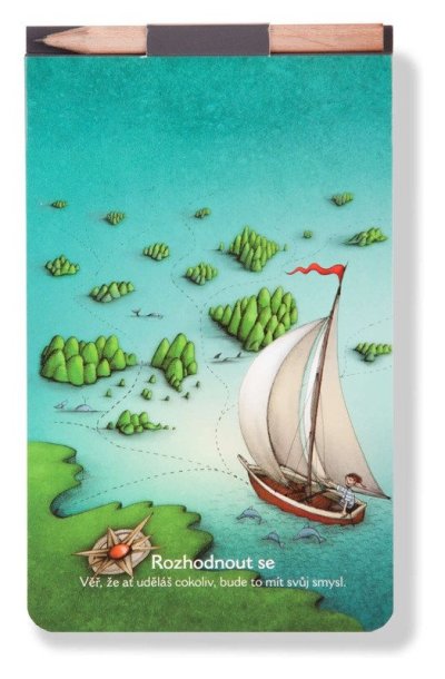 Formát 150 x 90 mm, čistý (nelinkovaný), lepený, tužka v bloku, magnet na zadní straně, speciální knižní papír (Holmen book), motiv Rozhodnout se. <br> <br>Poznámkový blok s tužkou a magnetem …