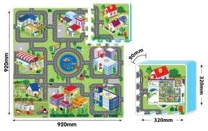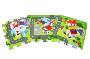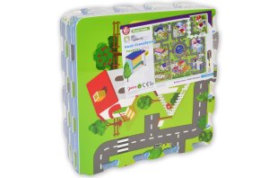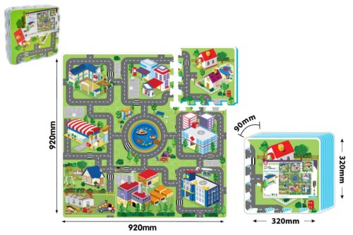 Pěnová podložka rozvíjí senzomotorické schopnosti, myšlení, kreativitu a soustředěnost. 9 dílů s motivem města je vyrobeno z bezpečného materiálu, který je měkký, omyvatelný, lehký, odolný a zároveň skvěle izoluje a tlumí hluk. Vhodné od 10 měsíců.