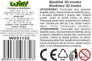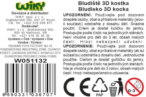 Bludiště 3D kostka barevná. Velikost 9cm. Cílem je dostat kuličku do jamky. Lze postupovat podle číslic na jednotlivých stěnách.