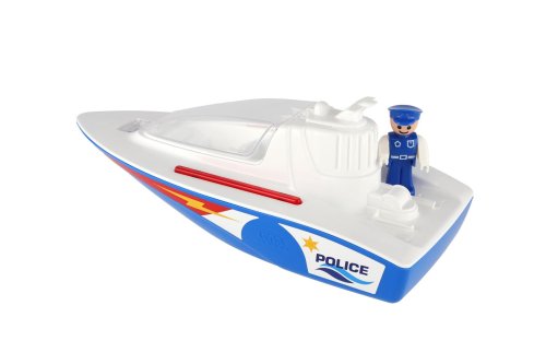 Otevírací kabina s dvěmi místy pro panáčky. Možnost připevnit a přepravovat malý katamarán. Součástí jedna figurka. Bez pumpy, bez obalu.