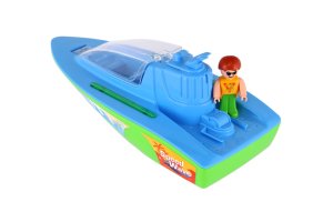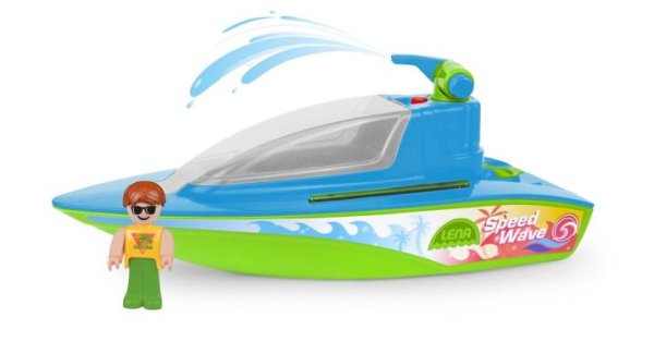 Otevírací kabina s dvěmi místy pro panáčky. Možnost připevnit a přepravovat malý katamarán. Součástí jedna figurka. Bez pumpy, bez obalu.