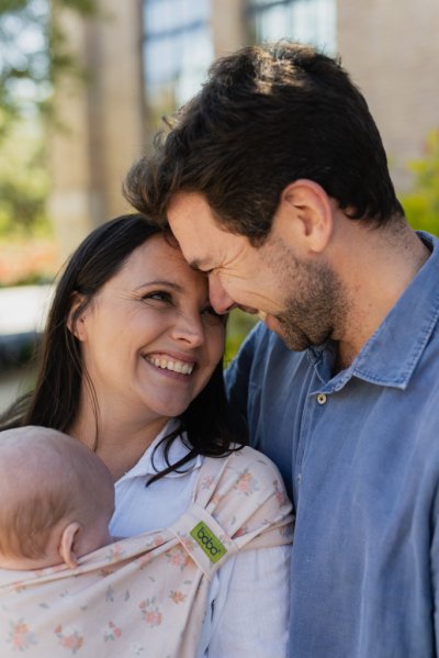 Patentovaná technologie spojuje to nejlepší z obou světů – jednoduchost používání a pohodlí našich dětských nosičů Boba a jemné držení nosičů Boba Wrap v jednom. Není třeba žádné vázání.
