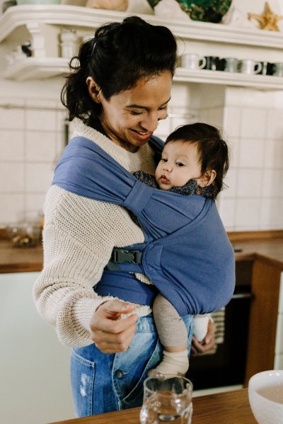 Patentovaná technologie spojuje to nejlepší z obou světů – jednoduchost používání a pohodlí našich dětských nosičů Boba a jemné držení nosičů Boba Wrap v jednom. Není třeba žádné vázání.