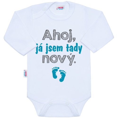 Originální bavlněné kojenecké body s dlouhým rukávem New Baby, s vtipným nápisem Ahoj, já jsem tady nový. Barvy použité k potisku jsou certifikované a vhodné pro miminka. Je vyrobeno z příjemného a kvalitního materiálu, ve kterém se bude Vaše miminko cítit příjemně. Body má zapínáni na cvočky na ramínku a mezi nožičkami, což usnadňuje oblékání a přebalování. Dopřejte Vašemu miminku vyniknout v originálním body. Složení: 100% bavlna. Rozměry: obvod kolem hrudníku cca 34 cm, délka rukávu cca 16 cm, celková délka cca 30 cm.<BR>- Produkt české značky