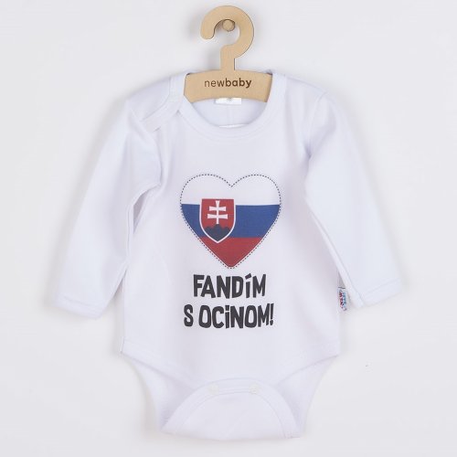 Originální bavlněné kojenecké body s dlouhým rukávem New Baby, s vtipným nápisem Fandím s ocinom a obrázkem slovenské vlajky.