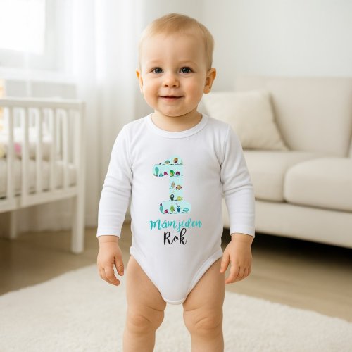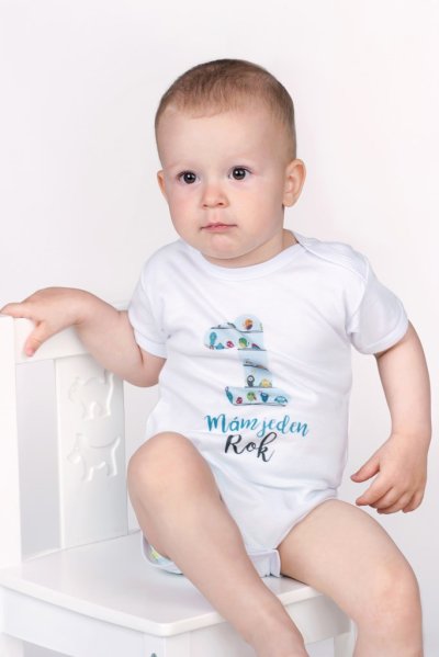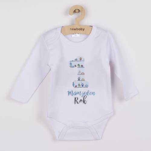 Originální bavlněné kojenecké body s dlouhým rukávem New Baby, s krásnym obrázkem velké jedničky a nápisem, Mám jeden Rok. Barvy použité k potisku jsou certifikované a vhodné pro miminka. Je vyrobeno z příjemného a kvalitního materiálu, ve kterém se bude Vaše miminko cítit příjemně. Body má zapínáni na cvočky na ramínku a mezi nožičkami, což usnadňuje oblékání a přebalování. Dopřejte Vašemu miminku vyniknout v originálním body. Složení: 100% bavlna. Rozměry: obvod kolem hrudníku 48 cm, délka od ramínek 42 cm.<BR>- Produkt české značky