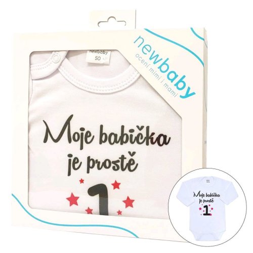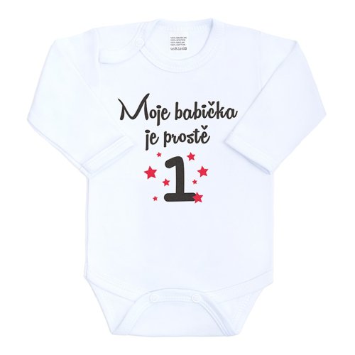 Originální bavlněné kojenecké body s dlouhým rukávem New Baby, s vtipným nápisem Moje babička je prostě jednička. Barvy použité k potisku jsou certifikované a vhodné pro miminka. Je vyrobeno z příjemného a kvalitního materiálu, ve kterém se bude Vaše miminko cítit příjemně. Body má zapínáni na cvočky na ramínku a mezi nožičkami, což usnadňuje oblékání a přebalování. Dopřejte Vašemu miminku vyniknout v originálním body. Složení: 100% bavlna. Rozměry: obvod kolem hrudníku cca 36 cm, délka rukávu cca 18 cm, celková délka cca 32 cm.