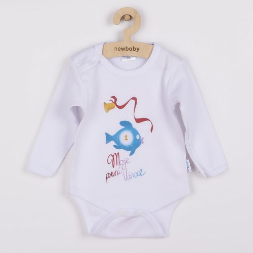 Originální bavlněné kojenecké body s dlouhým rukávem New Baby, s vtipným nápisem Moje první Vánoce a obrázkem vánočního kapříka. Barvy použité k potisku jsou certifikované a vhodné pro miminka. Je vyrobeno z příjemného a kvalitního materiálu, ve kterém se bude Vaše miminko cítit příjemně. Body má zapínáni na cvočky na ramínku a mezi nožičkami, což usnadňuje oblékání a přebalování. Dopřejte Vašemu miminku vyniknout v originálním body. Složení: 100% bavlna. Rozměry: obvod kolem hrudníku cca 34 cm, délka rukávu cca 16 cm, celková délka cca 30 cm.<BR>Produkt české značky