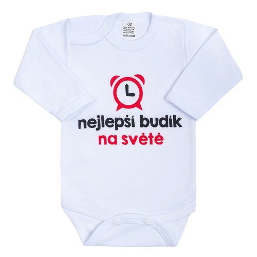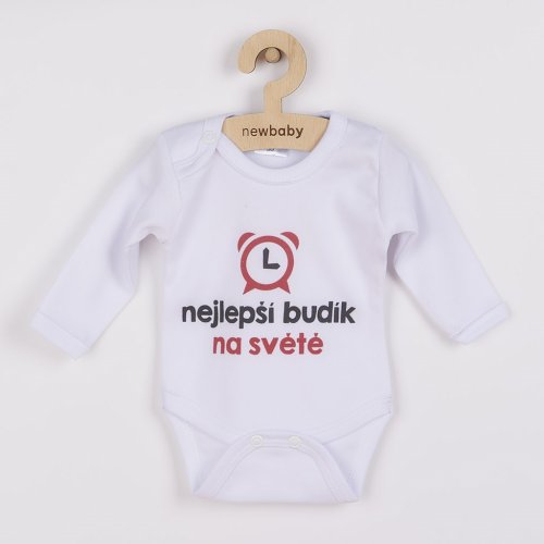 Originální bavlněné kojenecké body s dlouhým rukávem New Baby, s vtipným nápisem nejlepší budík na světě a ilustrovaný budíček. Barvy použité k potisku jsou certifikované a vhodné pro miminka. Je vyrobeno z příjemného a kvalitního materiálu, ve kterém se bude Vaše miminko cítit příjemně. Body má zapínáni na cvočky na ramínku a mezi nožičkami, což usnadňuje oblékání a přebalování. Dopřejte Vašemu miminku vyniknout v originálním body. Složení: 100% bavlna. Rozměry: obvod kolem hrudníku cca 46 cm, délka rukávu cca 24 cm, celková délka cca 40 cm.<BR>Produkt české značky