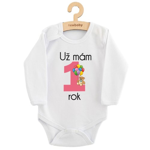 Originální bavlněné kojenecké body s dlouhým rukávem New Baby, s vtipným nápisem Už mám 1 rok a obrázkem velké jedničky s balónky. Barvy použité k potisku jsou certifikované a vhodné pro miminka. Je vyrobeno z příjemného a kvalitního materiálu, ve kterém se bude Vaše miminko cítit příjemně. Body má zapínáni na cvočky na ramínku a mezi nožičkami, což usnadňuje oblékání a přebalování. Dopřejte Vašemu miminku vyniknout v originálním body. Složení: 100% bavlna. Rozměry: obvod kolem hrudníku cca 46 cm, délka rukávu cca 24 cm, celková délka cca 40 cm.<BR>Produkt české značky