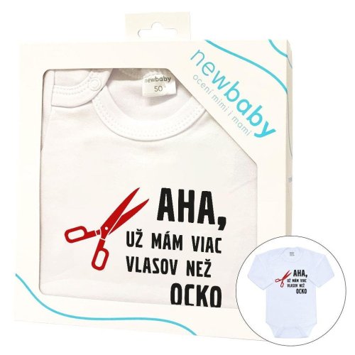 Originální bavlněné kojenecké body s dlouhým rukávem New Baby, s vtipným nápisem AHA UŽ MÁM VIAC VLASOV NEŽ OCKO. Barvy použité k potisku jsou certifikované a vhodné pro miminka. Je vyrobeno z příjemného a kvalitního materiálu, ve kterém se bude Vaše miminko cítit příjemně. Body má zapínáni na cvočky na ramínku a mezi nožičkami, což usnadňuje oblékání a přebalování. Dopřejte Vašemu miminku vyniknout v originálním body. Složení: 100% bavlna. Rozměry: obvod kolem hrudníku cca 42 cm, délka rukávu cca 23 cm, celková délka cca 38 cm.<BR>Produkt české značky