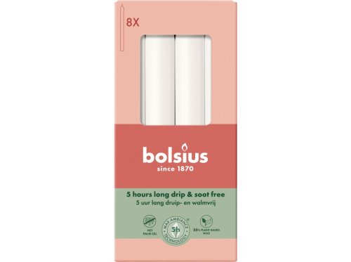 Kvalitní stolní svíčky vyrobené z přírodního veganského vosku bez obsahu palmového oleje. Hoří čistě a rovnoměrně bez nadměrného kouření. Díky klasickému tvaru jsou vhodné pro stolní svícny i sváteční aranžmá. Ideální pro každodenní použití i slavnostní příležitosti. Balení obsahuje 8 kusů. Doba hoření: přibližně 5 hodin. Barva: bílá.