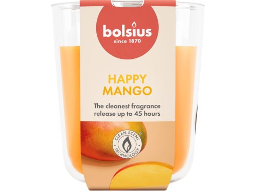 Vonná svíčka ve skle. Skleněná nádoba má silné dno a působí velmi elegantně. Vůně je tropická, s mangovým aroma. Svíčka z kolekce True scents kombinuje ikonické vůně s přírodními výtažky. Obsahuje přírodní veganský vosk a neobsahuje palmový olej. Díky pletenému bavlněnému knotu má svíčka stabilní plamen a nekouří. Doba hoření: 24 hodin. Rozměry: průměr 7 cm, výška 8 cm. Barva: žlutá.
