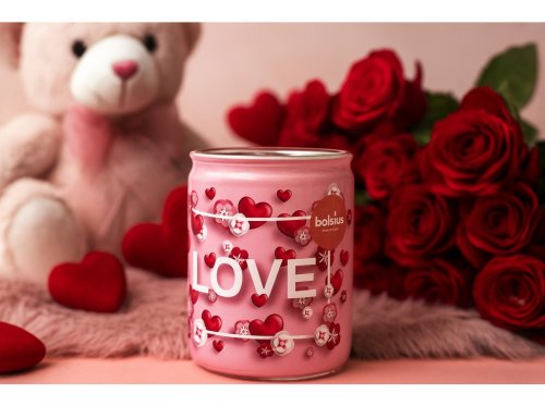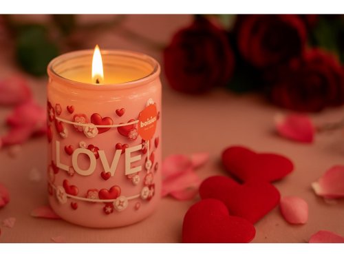 Okouzlující vonná svíčka s vanilkovou vůní a motivem srdíček Love dodá vašemu domovu hřejivou atmosféru.