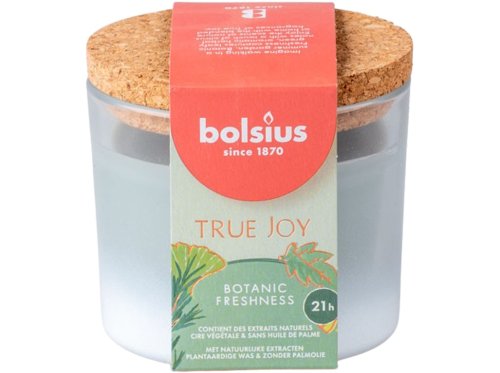 Vonná svíčka Bolsius True Joy Botanic Freshness – svěží botanická vůně s korkovým víčkem.