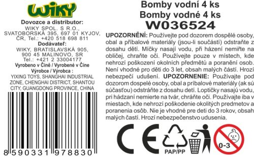 Bomby vodní 4 ks set. Míčky mají průměr 7,5 cm. Balení obsahuje 4 míčky.