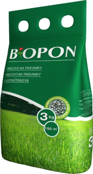 Jediným způsobem, jak vypěstovat zelený a hustý trávník, je jeho pravidelné ošetřování. Časté sečení přispívá k houstnutí drnů, ale tráva při svém intenzivním růstu rychle spotřebovává složky obsažené v půdě. Používáním BOPONU na trávníky obohacujeme půdu nejdůležitějšími výživnými složkami. Trávník díky tomu nezarůstá plevelem, snižuje se počet prázdných míst a intenzita výskytu mechu. Při zakládání nového trávníku stimuluje jeho růst. Bujně rostoucí trávu sečte nejméně jednou týdně.