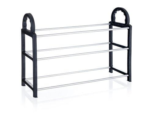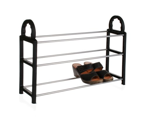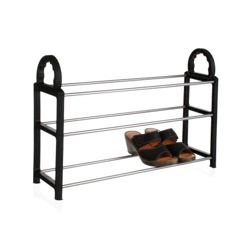 Stojan na boty je praktický pomocník pro ukládání bot. Materiál - chromované trubky a plastové bočnice v černé barvě. Botník lze velmi dobře využít i k vnitřnímu vybavení skříní či šaten.