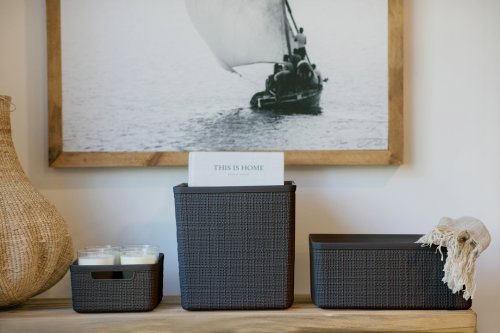 Tento stylový a praktický box se vyrábí ze 100% recyklovaného plastu. Je tedy šetrnější k životnímu prostředí. Jeho provedení připomíná tkaninu a perfektně zapadne do každého prostředí. Doplní vybavení kuchyně, obývacího pokoje, ložnice a klidně i koupelny.