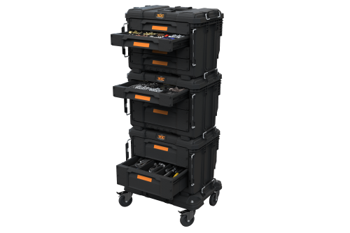 Stohovatelná konstrukce umožňuje skládat boxy na sebe a zajistit je pevnými západkami. Kromě toho lze celý box uzamknout visacím zámkem (není v balení). Díky bočním madlům je manipulace i s plně naloženým boxem pohodlná. Vnitřní přepážky umožní přizpůsobit uspořádání podle potřeby.