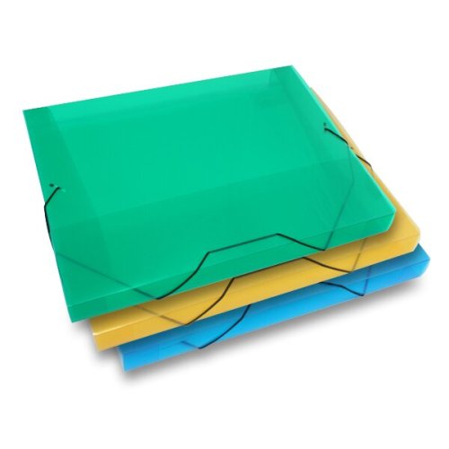 Box na dokumenty z transparentního polypropylenu s uzavírací gumičkou.