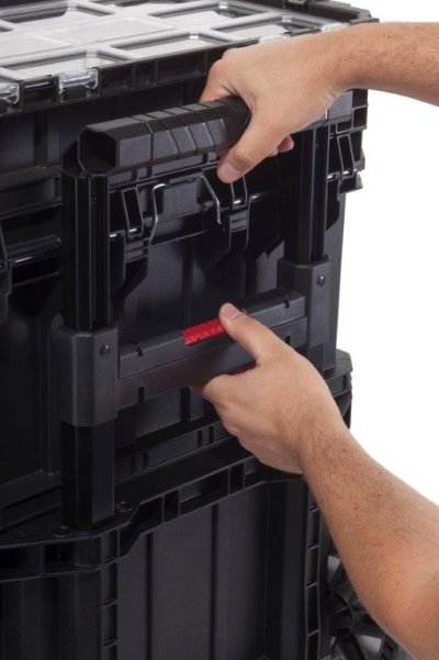 Odolné západky zajistí pevné uzavření boxu. Jeho obsah se vám tedy nevysype a zůstane v bezpečí. Madlo a kolečka vám navíc zjednoduší jeho přemisťování a manipulaci.