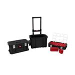 Nářadí si bezpečně uložíte do vnitřní části boxu nebo přímo do vozíku. Kromě toho jistě naplníte také organizér. Ten uchytíte na horní část boxu nebo ho použijete samostatně. Organizér je navíc vybavený vyjímatelnými přihrádkami, do kterých uskladníte drobné součástky. Díky průhlednému víku získáte dokonalý přehled o uložených předmětech.