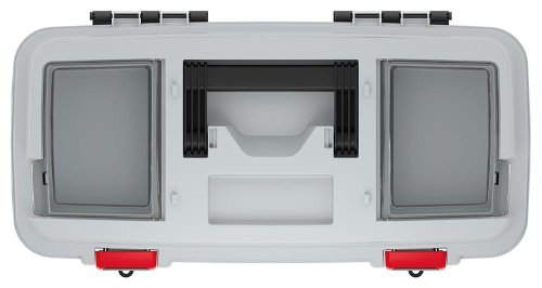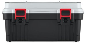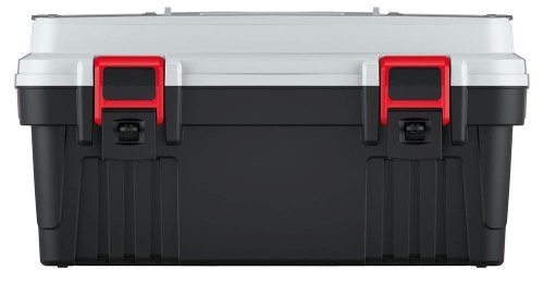 Rozměry: 470 x 256 x 238 mm Odolný materiál: Vyroben z kvalitního plastu, který zajišťuje dlouhou životnost a ochranu před poškozením. Přehledné uspořádání: Více přihrádek a vnitřních oddělovačů umožňuje snadné uspořádání nářadí podle velikosti a typu. Bezpečné uzamykání: Silné zámky chrání obsah boxu před neoprávněným přístupem a ztrátou. Přenosnost: Ergonomické držadlo zajišťuje pohodlné a bezpečné přenášení boxu.