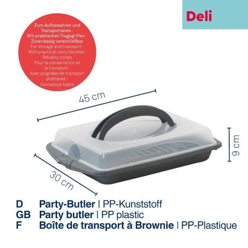 • praktický přenosný box na potraviny s průhledným víkem- velké sklopné rukojeti pro pohodlné přenášení- bezpečné uzavření víka pomocí postranních klipsů- ideální na jakékoliv potraviny či suroviny, na zahradu, párty, cestování, návštěvy, atd..- celkové rozměry: 45 x 30 x 9 cm- rozměry pouze vnitřní části: 35,5 x 26 cm- barva: šedá / transparentní- značka: KELA